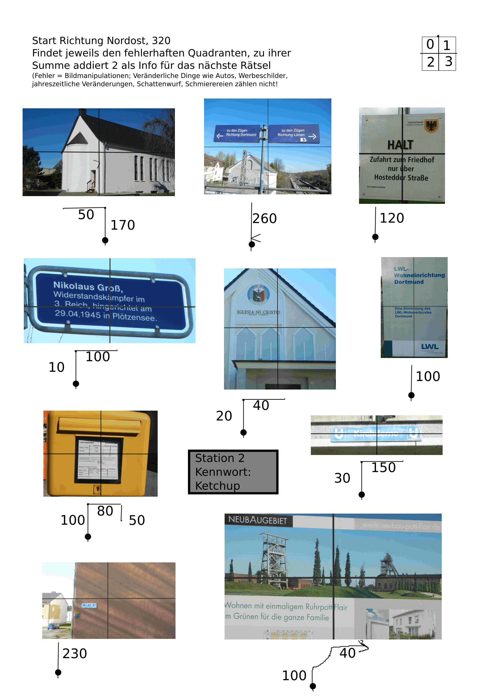 Auf dem Bild müsst ihr den Fehler finden und die Zahl des entsprechenden Quadranten aufsummieren.