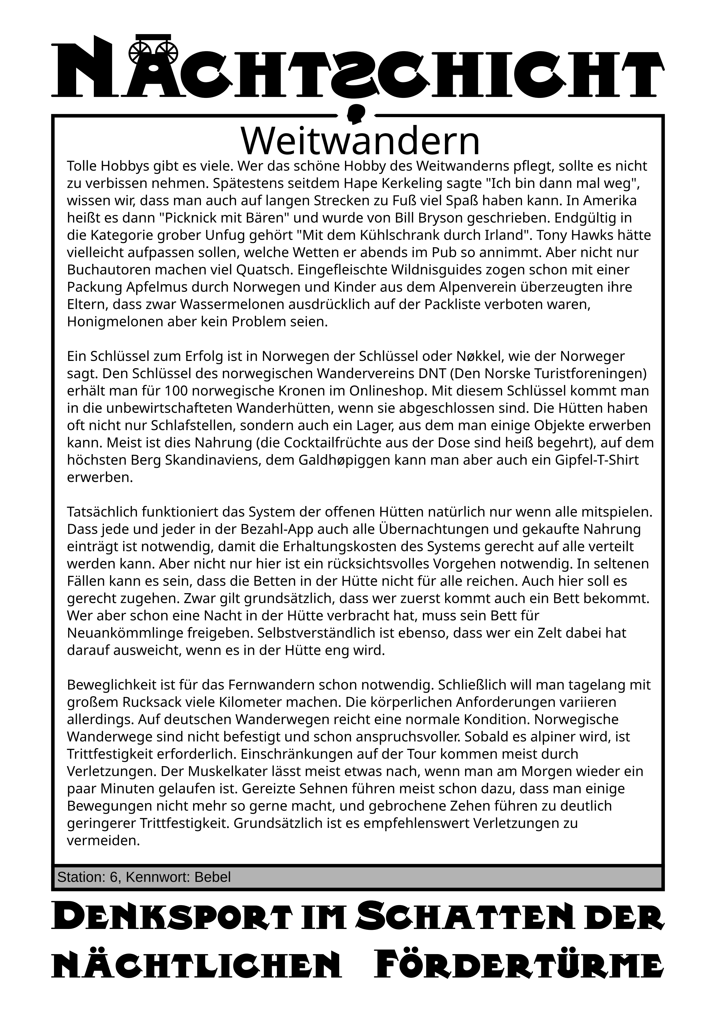 Für dieses Rätsel benötigte man folgende Sachen aus dem Infoheft: Arbeitsorganisation.