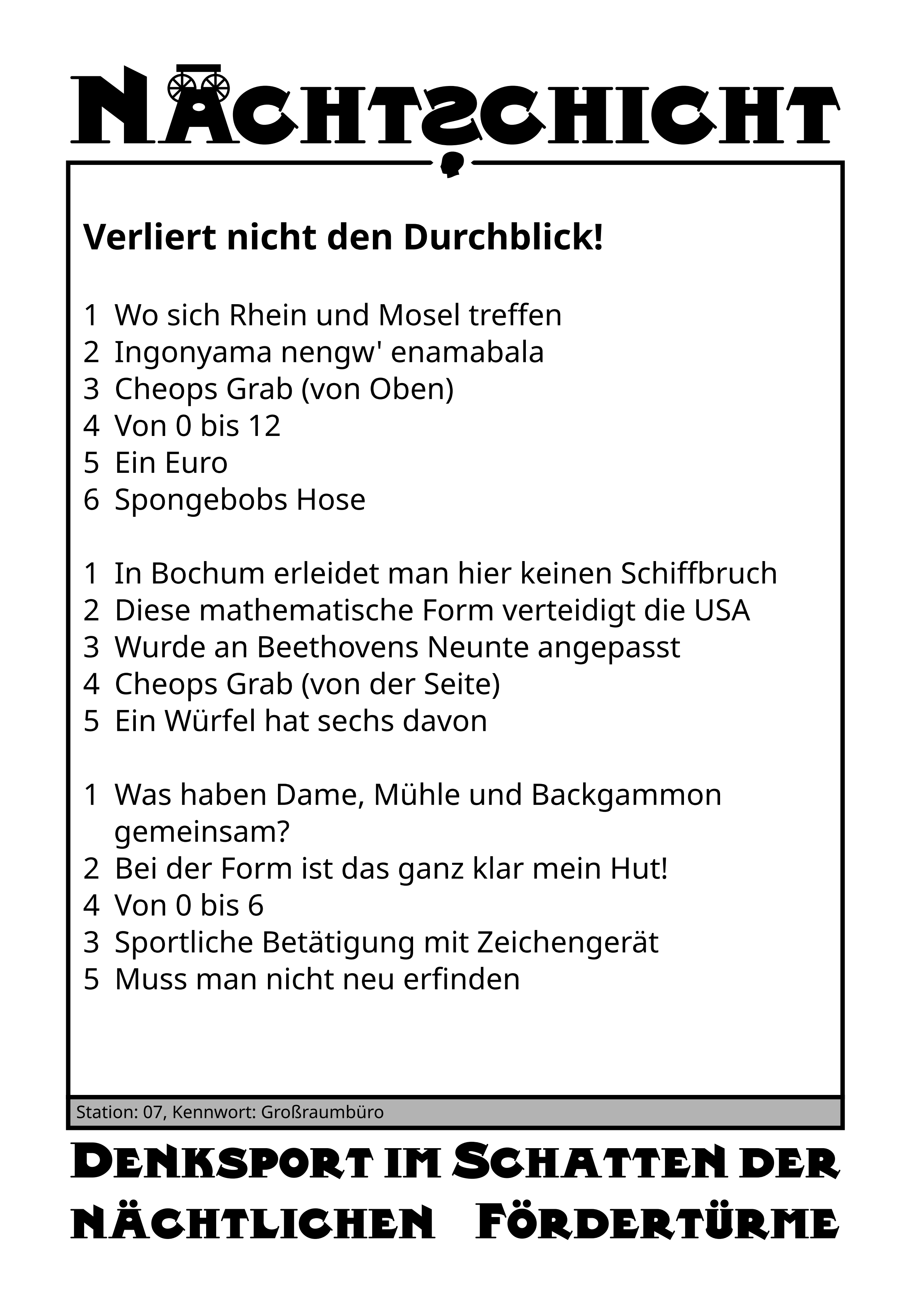 Für dieses Rätsel benötigte man folgendes Equipment von der Packliste: Smartphone-Taschenlampe.