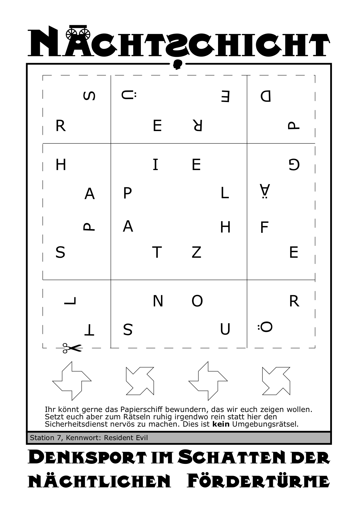 Entlang der äußeren gestrichelten Linie ausschneiden und Figur ("Windrad") falten.