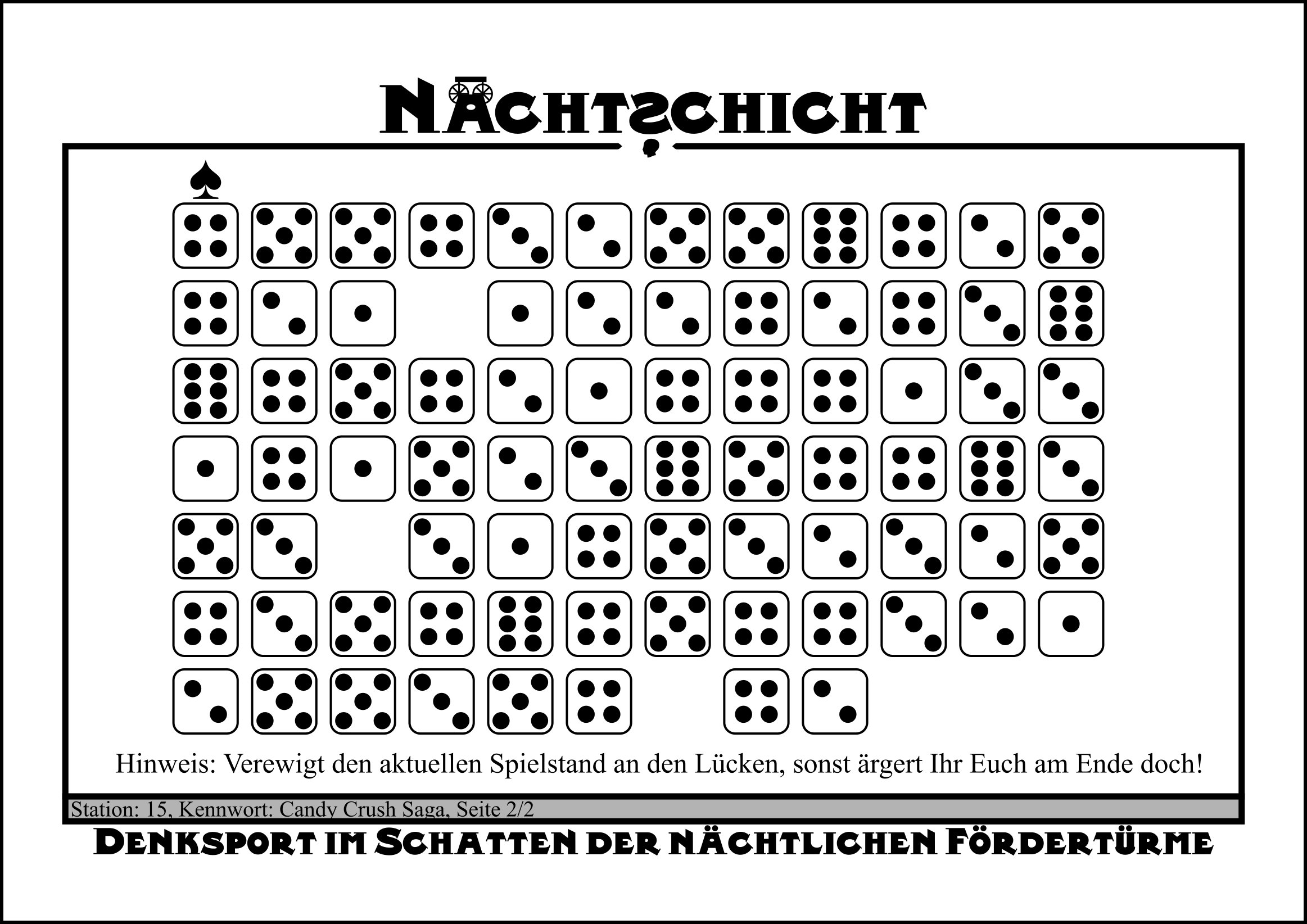 Immer wenn eine Lücke bei den Würfeln ist, müssen die durch Figuren markierten Buchstaben markiert werden.
