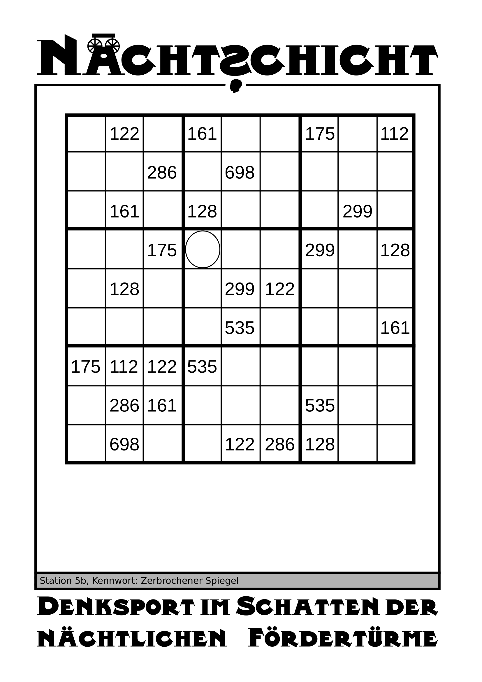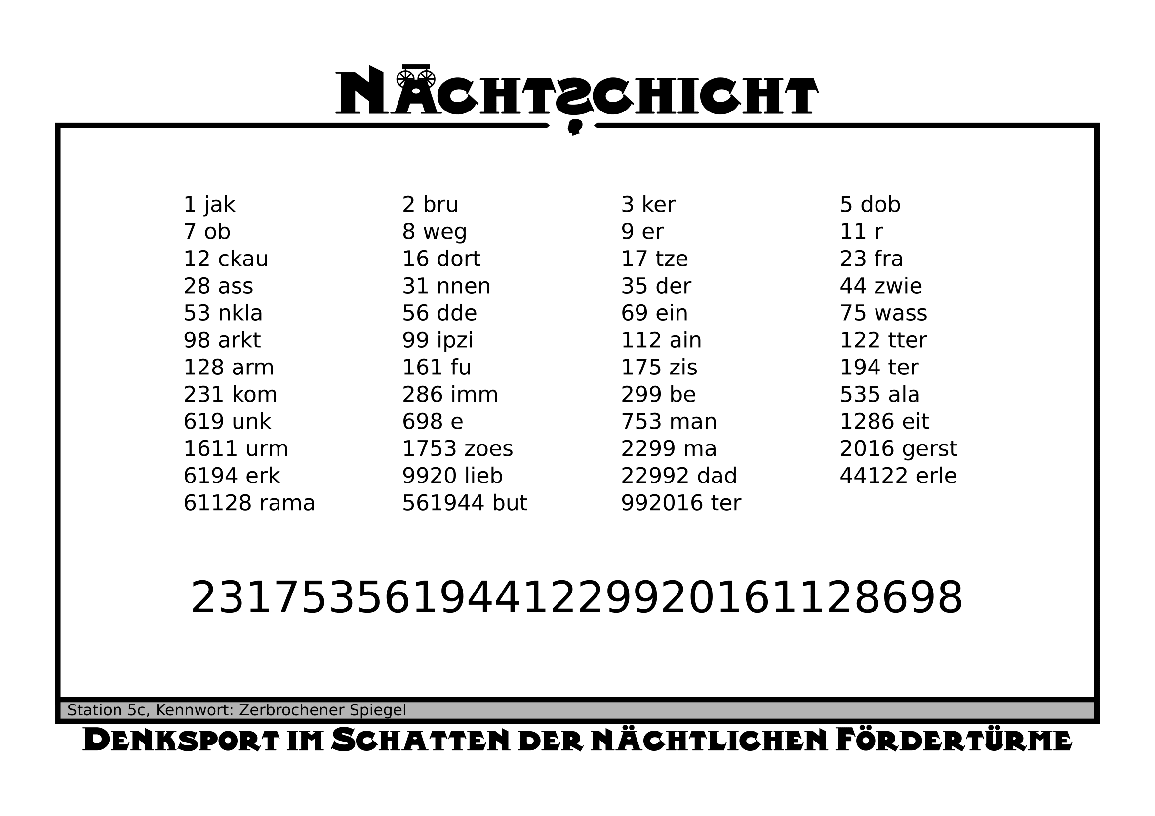 An der finalen Station erhalt man einen weiteren Zettel. Die lange Zahl dort muss so geteilt werden, dass die Ergebnisse der Teilrätsel zu finden sind.
