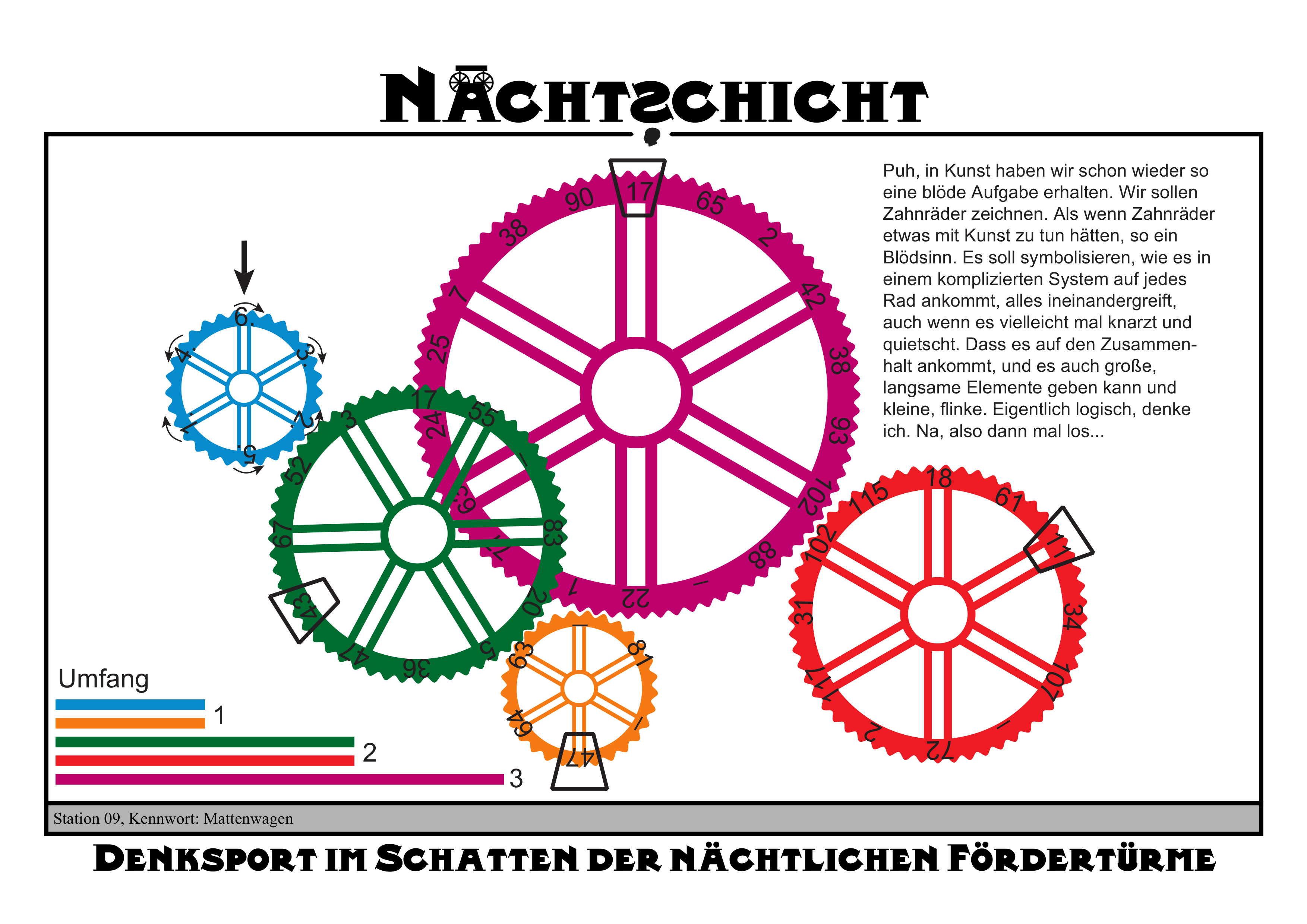 Der Lückentext im Infoheft ist ein Hinweis auf die Bronzetafel an den Zahnrädern.