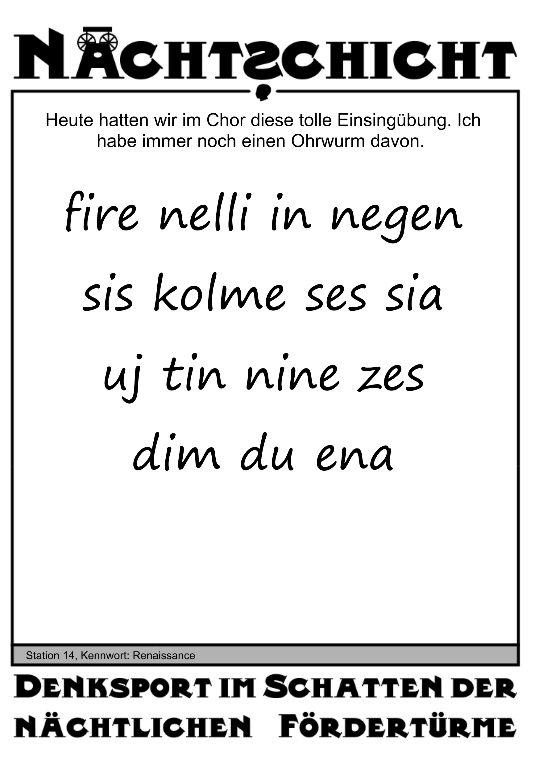 Der Zusatztext auf dem Rätselzettel ist nicht relevant.